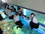 朝は、WAVE40でボウリングをしました。1ゲームのチーム対抗戦を行い、景品をかけて争いました。お昼前から、松島水族館へ移動しました。イルカショーやシアタールームでの映画鑑賞など、短い時間にたくさんの催し物に参加しました。