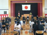 丸岡高校定時制の体育館で入学式が挙行されました。穏やかな春の雰囲気に包まれる中、緊張した面持ちの新入生と保護者を迎え、静かに歓迎の式典を開きました。