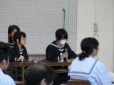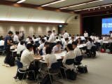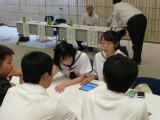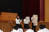 スマートフォンのルール説明 | 県庁に、全県の生徒会が集う | 左記、集会の一場面 ネットいじめなどについて語る |